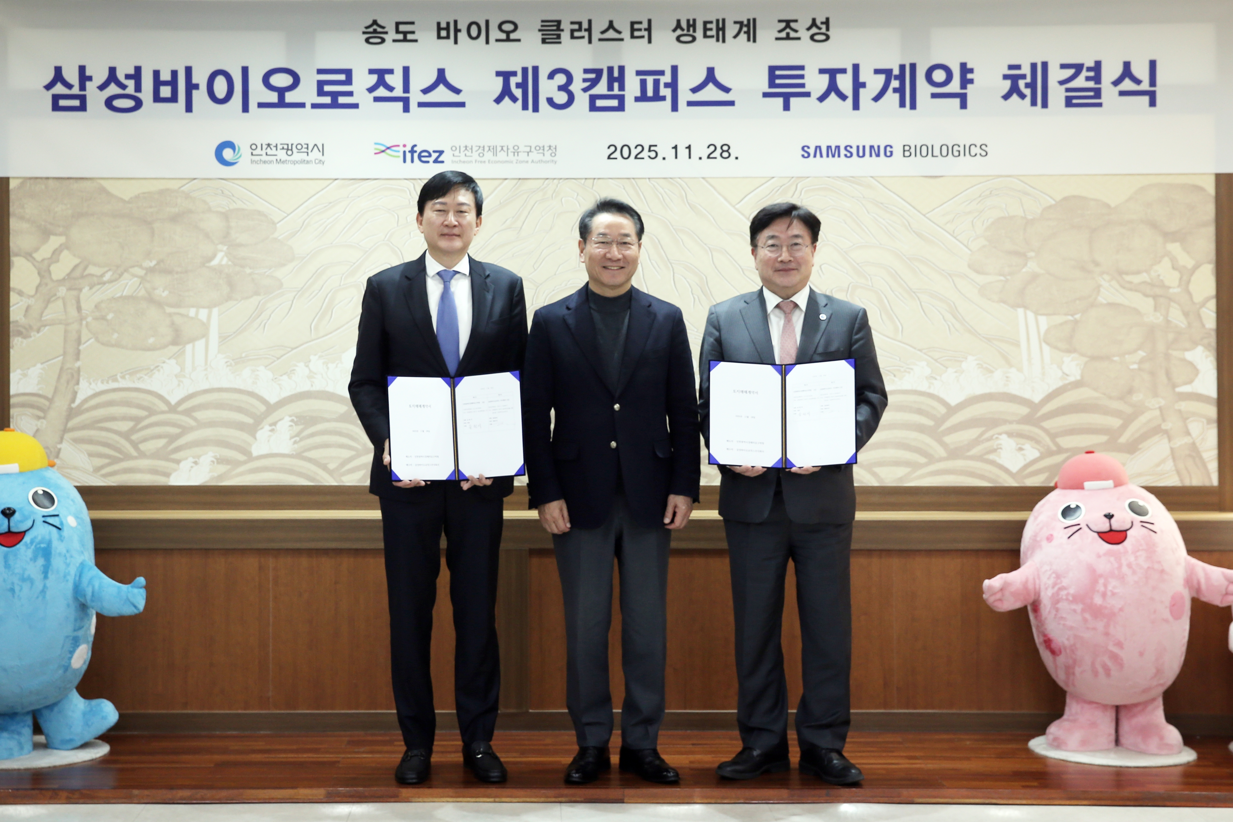 On November 28, 2025 (Friday), IFEZ signed a land sale contract with Samsung Biologics at Incheon Metropolitan City Hall for an industrial facility site (187,427㎡) in the Advanced Industrial Cluster (C) of Songdo International City's 11th district. This contract aims to establish a bio village for next-generation biopharmaceutical research, development, and manufacturing, including cell and gene therapies. The total project investment is estimated at 7 trillion KRW, with the facility expected to create over 4,000 new jobs by 2034. This initiative strengthens the bio-cluster's competitive edge by attracting anchor companies to Songdo's 11th district.
