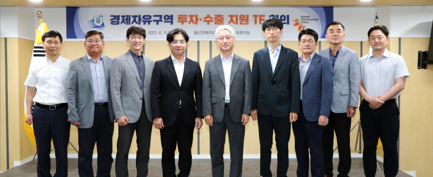 산업통상자원부 경제자유구역기획단은 15일 울산경제자유구역청에서 조영신 울산경제자유구역청장, 강장진 산업통상자원부 경제자유구역기획단장, 엄찬왕 산업통상자원부 장관정책보좌관 등 관계자들이 참석한 가운데 '경제자유구역(UFEZ) 투자·수출지원 TF 회의'를 열고 울산경제청의 주요 현황 및 투자·수출 애로사항의 해결 방안을 모색했다.