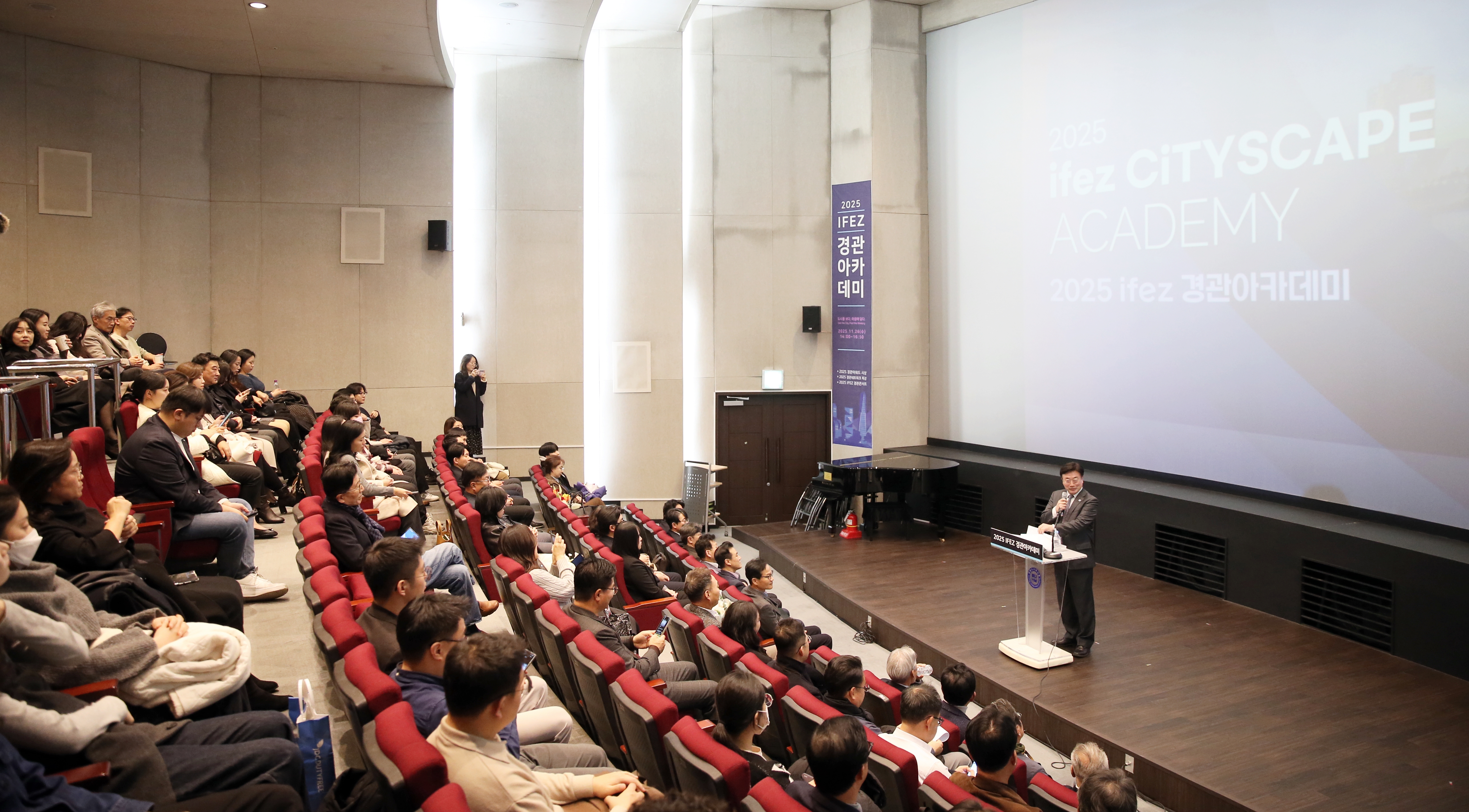 2025년 11월 26일(수요일), IFEZ는 인천도시역사관 강당에서 '2025 IFEZ 경관아카데미'를 개최했다. 이번 행사는 '도시를 보다, 마음에 담다(See the City, Feel the Memory)'를 주제로 시민과 전문가가 함께 모여 IFEZ 경관과 도시디자인에 대한 소통과 심도 깊은 논의를 진행했다. 행사는 2025년 IFEZ 경관어워드 시상식을 시작으로, '청계천 야간경관 개선사업' 특강과 'IFEZ 도시디자인의 미래' 발표, '해외 조망점 운영·관리 사례와 IFEZ 조망점 관리 전략' 발표 등으로 구성되었다. IFEZ는 송도, 영종, 청라 전체를 대상으로 2020년 수립된 경관계획을 재검토해 글로벌 미래도시에 맞는 새로운 경관 미래상을 설정하고, 2030년까지 실천 가능한 과제를 발굴해 체감할 수 있는 경관계획을 수립 중이다.